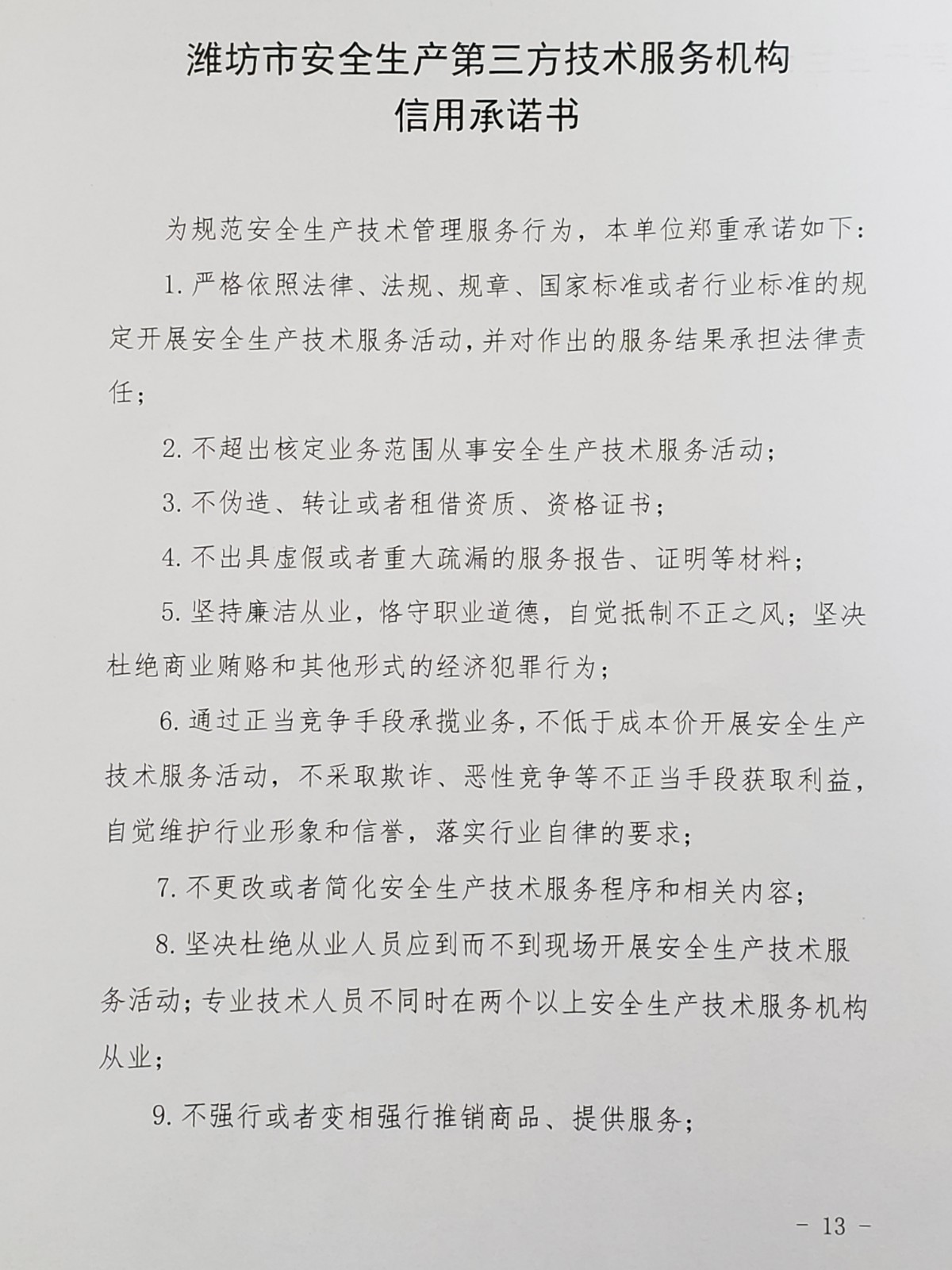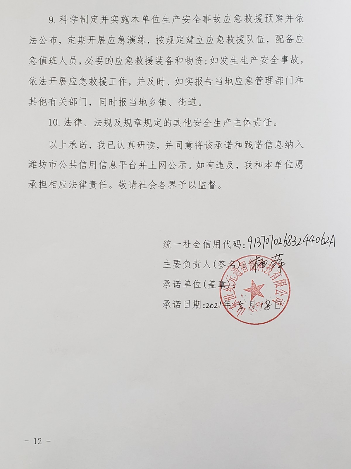 公司關于《濰坊市生產經營單位安全生產信用承諾制度》的公示