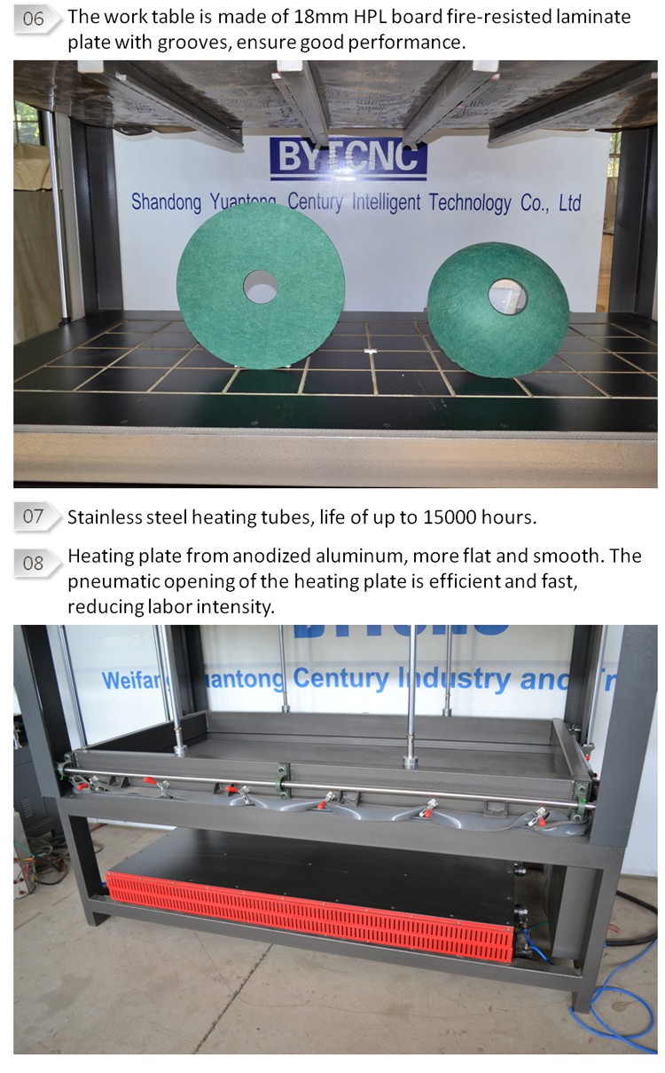 4.工作臺面采用18mm HPL耐火板,保證良好的平整度,工作臺面加工槽溝,使用壓力均勻分布在工件的每個位置;