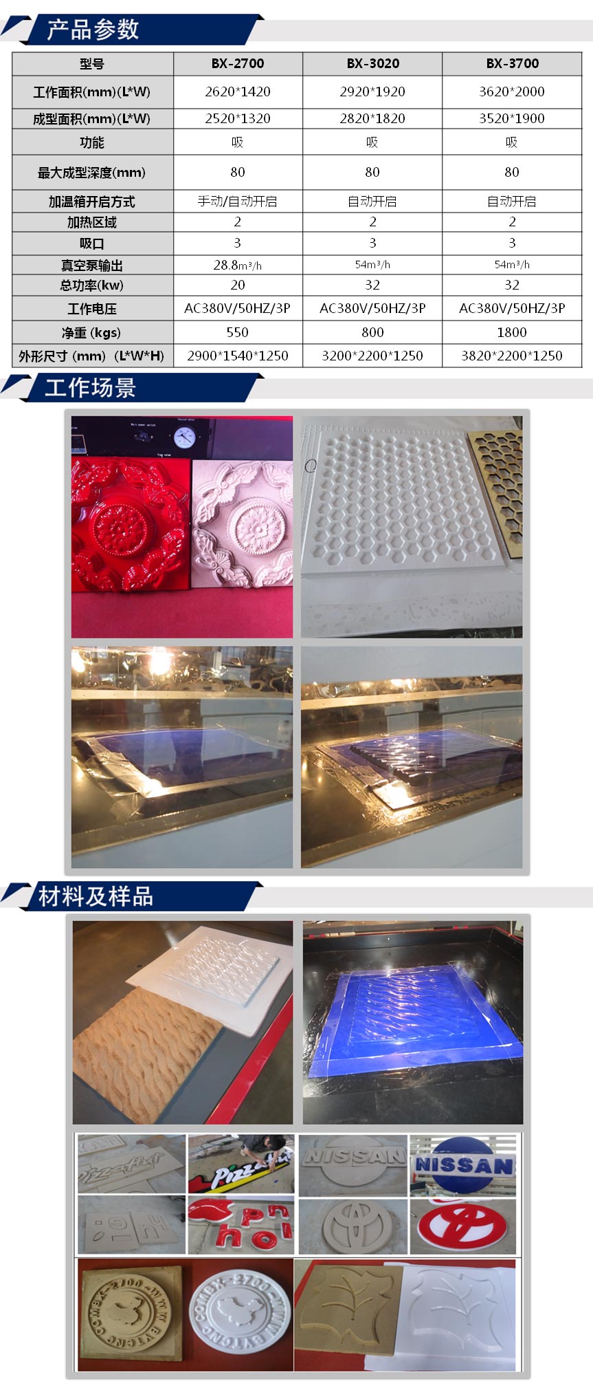 應用行業和材料:1)塑料模具和面具制作2)廣告標識制作3)大學或科研機構實驗教學4)巧克力,蛋糕等包裝盒子制作5)建筑裝飾或汽車裝飾材料制作6)其他熱塑型材料的成型制作工業...